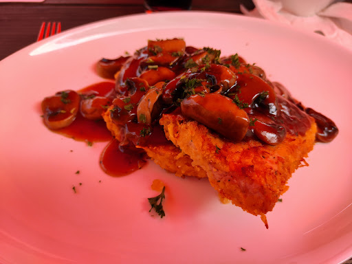 Read moreAuf der Suche nach einem Restaurant im Raum Pirmasens sind wir auf den Schnapskeller in Bottenbach aufmerksam geworden. Vorneweg, der Wirt war sehr bemüht und freundlich. Auch Teile der Bedienung. Das Essen war leider überhaupt nicht unser Fall. Das Salatbüfett bestand aus Nudelsalat (inkl. Eierschalenresten), eingelegtem Rosenkohl und Blumenkohl in einer weißen Soße. Frisch war nur einfacher grüner Blattsalat. Etwas dünn, aber ok. Wir bestellen jeweils ein Rahmschnitzel und ein Jägerschnitzel vom Schwein. Es kamen jeweils 3 Schnitzel in exakt gleicher Größe. In meiner Jägersoße fand ich 3 dünne Scheiben Pilze. Definitiv zu wenig. Dazu hatten wir Pommes (diese waren in Ordnung) und Bratkartoffel. Diese warnen definitiv aus der Friteuse. Mehr wie Kartoffelchips und sehr fettig. Dies wurde aber sowohl von der Bedienung als auch vom Wirt bestritten. Wir hatten das Gefühl, dass das Konzept mehr auf Masse und Tempo statt Klasse und Qualität gelegt wurde. Das Essen war fast schon zu günstig. Gute Bratkartoffeln brauchen eben seine Zeit. Und gute Schnitzel gehören ordentlich geklopft und in guter Butter goldgelb geschwenkt... So haben wir fast alles zurück gehen...