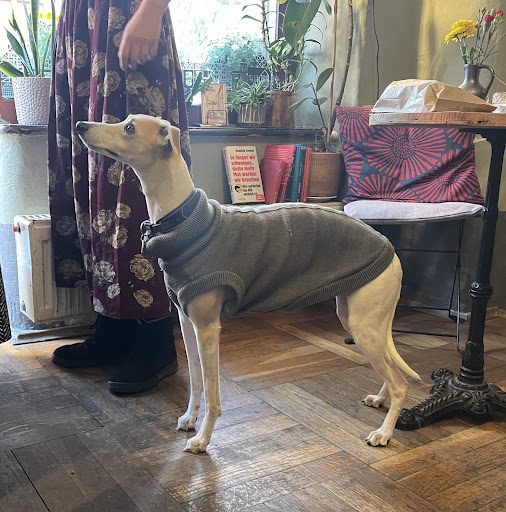 Hatte ich doch eine Runde um den Weihnachtsmarkt gedreht,hernach über die Frohngasse zur Schmiedestrasse geschlendert.Da fiel mein Blick linkerhand auf ein nett gestaltetes und beleuchtetes Objekt mit Markise,und Sitzgelegenheiten darunter….So ließ ich mich hineinlockten.Die Tür quietschte arg,ein großer Schritt über die Stufe war nötig…Doch dann empfing mich sofort eine gemütliche Atmosphäre,mit dem Interieur und dem Ambiente eines privaten Wohnzimmers.Selbst die Größe des Raumes entsprach diesem.Nur etwa 4 Tische,oder 5,davon zwei besetzt.Ließ mich dann rechts nieder,neben einem Spiegel,angedacht für 2 Personen.Wurde nett nach meinem Begehr gefragt,und alsbald erhielt ich den gewünschten Cappuccino…Interessant war derweil,das der Hund 🐕 des Hauses,jeden Gast dieses kleinen Cafés,wohl noch persönlich begrüßte,indem er zutraulich von einem Tisch zum anderen ging.So fragte ich später die Inhaberin,was das wohl für eine Rasse sei.Sie meinte,es sei ein Whippet,ein englischer Jagdhund,der auch sehr kinderfreundlich ist. Nicht zuletzt wegen ihm,nahm ich mir vor,dieses schöne und gemütliche Café bald mal wieder zu besuchen,auf die Gefahr hin,nicht immer gleich einen leeren Tisch oder Stuhl 🪑 vorzufinden.Bis dahin,wünsche ich den Inhabern ,gute Geschäfte,und zufriedene Kunden,wie ich selbst...