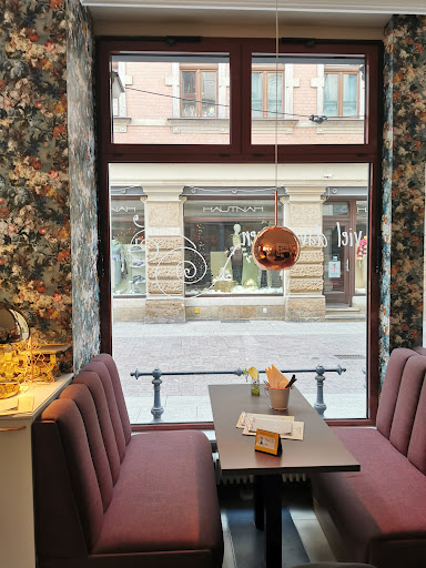 Read moreIhr wollt richtig gut inmitten der Altstadt von Pirna frühstücken gehen? Dann empfehle ich euch diese Lokalität. Wir sind ziemlich spät zum Frühstücken aufgebrochen und kamen erst gegen11.30Uhr dort an. Aber das war kein Problem, denn ihr bekommt hier den ganzen Tag über Frühstück. Was ich absolut grandios finde. Das Ambiente ist stylisch schick und dennoch nicht abgehoben. Gemütliche Sofanischen, geniale Lampen, warme, gedeckte Farben, hohe, herrschaftliche Decken, schicke Bar… alles vereint einen Style aus alt und neu… und zudem: Absolut sauberes WC! Die Servicekräfte arbeiten zugewandt, freundlich und sind schnell. Haben den Gast gut im Blick, erkundigen sich, ob man noch Wünsche hat und räumen nicht mehr Benötigtes zügig ab. Die Servicekräfte haben einen gut, aber nie aufdringlich im Blick. Die Frühstückskarte ist toll, wird schick offeriert und es werden originelle Frühstücke angeboten. Ich wählte z.B. das Frühstück Copitz. Absolut genial und sehr zu empfehlen, wenn ihr auf herzhafte Frühstücke steht. Von Mett mit Zwiebeln, eingelegten Gurken, frischem aufgeschnittenen Gemüse, kleine warme Würstchen mit Senf, feinem luftgetrockneter Schinken etc. und dazu Brötchen… zum Teil in Herzform waren dabei. Schaut euch meine Fotos unten an und ihr erkennt, hier wird mit Liebe zum Detail serviert! Alle Zutaten waren ausnahmslos lecker und wirkten nach guter und frischer Qualität. Mein Milchkaffee war übrigens auch mega lecker! Also ganz klar: Würde ich Pirna wieder mal besuchen, so würde ich zum Frühstücken hierherkommen!!!! Empfehlung...