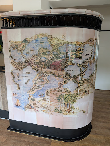 Die Lage direkt am See ist wunderschön. Man kann drinnen und draußen auf der Terrasse sitzen, mit direkten Blick auf den See. Hier befindet sich auch der Bootsanleger für die 5-Seen-Tour. Das Restaurant liegt in einem Hotel. Leider fungiert dieses Restaurant oder Café mit Selbstbedienung. Kaffee muss sich der Gast an der Maschine auswählen. 3 verschiedene Torten stehen zur Auswahl. Unterschiedliche Flammkuchen werden neben einer kleinen weiteren Auswahl angeboten, die jedoch frisch hergestellt werden und bei einem Klingelton am Tresen abgeholt werden können. Letztlich hat leider alles, auch mit der Einrichtung, einen Jugendherberge-/Raststättencharakter. Das einzig Schöne ist die Lage. Wirklich schade, dass nicht mehr aus der Location drinnen und draußen, als auch vom Service her mehr gemacht und...