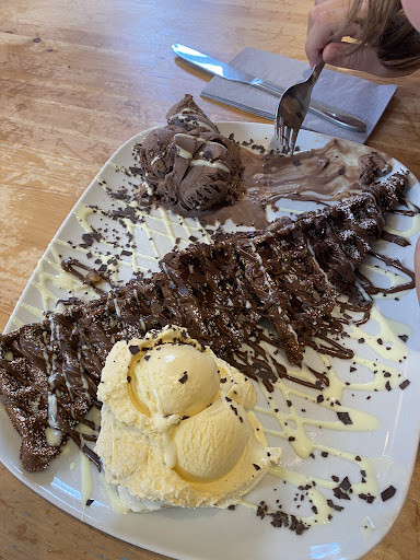 Read moreNach einem Spaziergang spontan auf der Suche nach einem Kaffee vorbei geschaut. Für einen Samstag Nachmittag im Februar, würde ich sagen, gut besucht. Eine Tischauswahl viel uns leucht, da nurnoch einer frei war. Der erste Eindruck: Eine umgebaute Wohnung, sehr lang gezogen. Der hintere Bereich ist Bestell-und Kassentresen mit Einsicht in die Küche. Im vorderen Bereich befinden sich die Tische mit Nummern. Das Ambiente ist die Seefahrt angelehnt mit Netz ect. Humorvolle Schiller an den Wänden runden die Blicke ab. Service: Ich nenne es mal Teilservice. Hinsetzen, auswählen und dann zum Tresen zum selber bestellen. Mit Angabe der Tischnummer wird die Bestellung zeitnah an den Tisch gebracht. Nach dem Verzehr, kann nach bestellen, oder selber abräumen und zum Bezahlen gehen. Das Essen: 2x Waffeln mit Erdbeeren, davon ein Teller mit Eis, ein Milchkaffee, ein Eiskaffee und eine Fritzkola. Waffeln und Eiskaffee werden mit Zimt bereitet. Die Erdbeeren sind frisch und saftig. Gute Qualität mit Geschmack, was für Februar nicht selbstverständlich ist. Die Teller sind liebevoll dekoriert und laden zum Entspannenden Verzehr ein. Der Geschmack ist köstlich, sehr süß. Mit der Preis/Leistung bin ich sehr zufrieden. Rund 35€ für die Bestellung ist völlig ok liegt bei der Qualität im guten Rahmen um mal spontan ein weitereren Besuch zu bekommen. Das Personal sind junge Frauen, die freundlich sind und gerne lächeln. Wenn ich schätzen würde, ist es eine junge Selbständigkeit, wo Herz und Seele reingesteckt werden. Fazit: Ein Café/Eisdiele mit Charme und Liebe. Qualitativ hochwertige Speisen zu angemessen Preisen. Freundliches Personal mit Teilservice. Für Menschen mit Handycap leider eher ungeeignet. Es gibt mehrere Stufen und bei Phobien, sollte man auf die Tagesform achten, da Geräusche und zum Teil eine Enge vorhanden sind. Das macht aber auch den Charme aus. Dat Waffelhuus, macht weiter so. Wir haben uns Willkommen gefühlt und es war eine sehr schöne Erfahrung mit Genuss. Wir kommen...