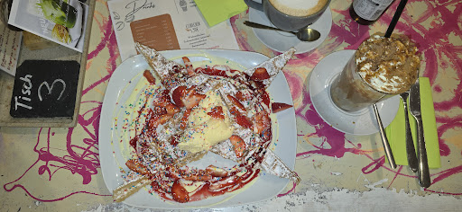 Fazit: Wir hatten eine dreiviertel Stunde Wartezeit für 2 Waffeln und 2 Kaffees. Wir hatten dadurch genügend Zeit, den Ablauf zu beobachten. Leider werden wir nicht mehr kommen. Die Waffeln waren zwar gut, aber jetzt nichts besonderes...normal. Der gesamte Eindruck hat uns einfach nicht gefallen- und die Mädels müssten besser geschult werden, wie man...