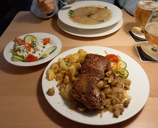 DON'T GO IF YOU DON'T SPEAK GERMAN. We'd always seen people visiting this restaurant and decided to try it out. The waitress was first very sweet but as soon as we started speaking in English, she became very rude and dismissive of us. She was speaking in English fluently, without stopping or thinking for words, so it's not like it was because she didn't know English. She was irritated that we didn't understand the menu, she was irritated that we took time to translate the menu by Google translate and she showed us her irritation very well, while being sweet to other patrons. We ordered the eisenpfanne special which had a chicken, pork and beef steak, with veggies and hollandaise sauce. The food was good, but the service was bad. Plain bad. If you don't know German, DON'T GO TO THIS PLACE. The atmosphere is good, the lights are warm and cozy, lots of people were drinking beer so I guess it's a good place to relax and have a drink with food. Three stars because the food was good. Not great, but good. Edit: still as bad service as in 2019, except I...