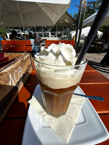 My bad that I didn’t check the reviews before I gave a try to that place. This lovely restaurant is at the end of the beautiful hiking route on the Prinzeninsel. As probably the rest of the guests, I decided to have a nice break and have a coffee and eat something. I sat in a beautiful outside area, very lovely. I have to mention that it was really busy there but I didn’t wait for a table, but instead I waited around 20 minutes to get a menu - what was kinda sad. Then I ordered an iced-coffee and soup of the day (what in my opinion shouldn't take that much time to prepare, probably just warm up and pour). And yeah, coffee was really great, and it arrived relatively early when my food was probably forgotten, no idea. I waited 40 minutes and I got really hungry. And the soup which I finally got was (in my opinion) only okay for a price I paid for it. And it was also not that much, nothing really special. I kinda regret that I didn’t order a cake. I don’t know what got wrong, maybe it was just not the best day for them. Place is lovely but waiting time was defintely...
