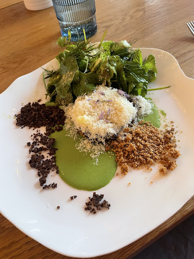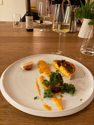Die Location ist ohne Frage sehr gelungen: stilvoll eingerichtet, mit direktem Blick in die offene Küche und in den wirklich schönen Garten. Auch das Konzept des gemeinsamen Essens an einer langen Tafel hat uns gut gefallen. Die Gespräche mit den anderen Gästen unseres Tisches waren sehr angenehm und offen, was zur Atmosphäre am Tisch selbst beigetragen hat.