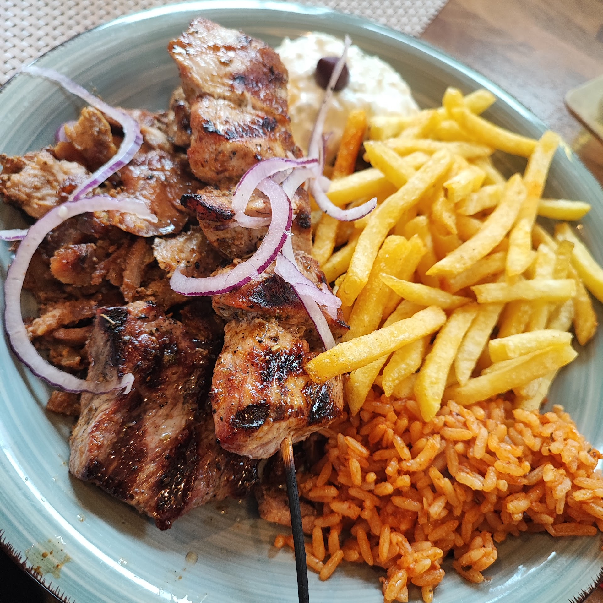 Das Essen war im Allgemeinen lauwarm und das Gyros und der Reis zudem noch fad. Da mit uns noch ein weiterer Tisch belegt war, die aber bereits mit dem Essen fertig waren, kam unser Essen relativ schnell an den Tisch.