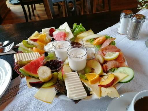 Vom Frühstück war ich leider enttäuscht, Preis und Leistung passt nicht zusammen. Ich habe ein Frühstück für 2 Personen und einen Filterkaffee bestellt. Auf meine Frage ob das Frühstück vegetarisch sein könnte, entgegnete mir die Bedienung zwar mit ja aber sie tat so als wäre das eine exotische Frage... Ich mag nun mal keine Wurst zum Frühstück... Nun gut, trotzdem wurde es umgesetzt. Bekommen und bezahlt habe ich dann das Frühstück und einen Pott Kaffee und keinen Filterkaffee. Sprich ca. 1€ mehr für Kaffee aber gut, kein Problem. Was mich aber wirklich gestört hat war das Brot und die Brötchen, welche in Stücke geschnittene Baguette waren und beides nicht vom Bäcker. Außerdem ist der Käse von keiner Käserei. Sorry aber ich gehe wirklich öfter zuhause in Hamburg Frühstück essen und wenn ich da 20-25€ zahle ist der Käse hochwertig! Ich habe insgesamt 25€ gezahlt für günstigen Käse, Obst vom Vortag, Quark aus der Packung und Joghurt mit einem Haar. Ok den Joghurt hätte sie ausgetauscht aber da war ich bereits satt und zwischendurch kam niemand. Der Service war daher durchschnittlich. Fazit: Schönes Ambiente, Preise wie in der Großstadt aber Qualität:...