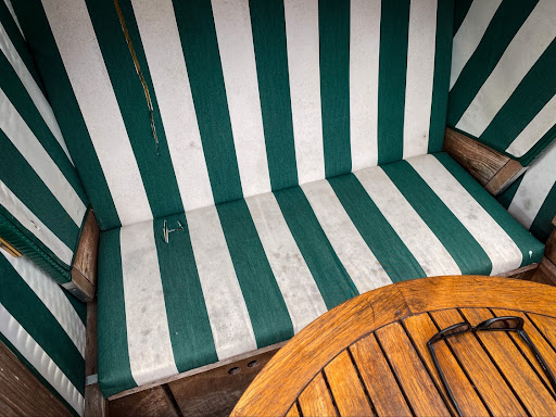 Weiterhin lieblos in der Sache. Ungepflegte Strandkörbe und Pflanzen die ihre besten Zeiten hinter sich haben. Ein Staubsaugerroboter im Gästebereich des Pavillons, irgendwie befremdlich und nicht wirklich einladend.