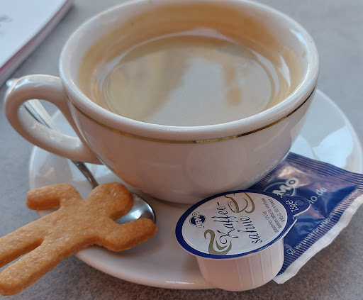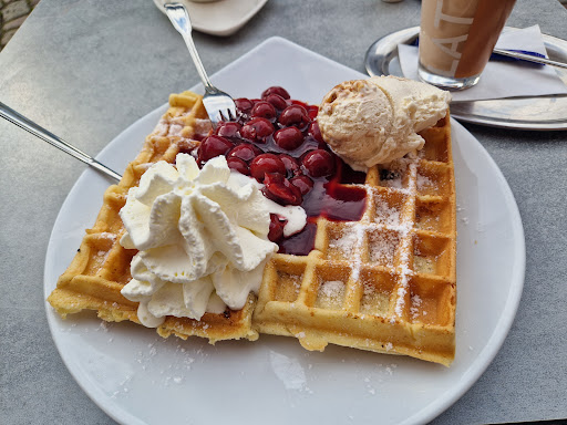 Read moreEs ist ein sehr gut besuchten Eiscafe'. Das Angebot ist sehr umfangreich und reicht von Eis und Eisbecher, frischen Waffeln bis hin zu kalten und heißen Eisgetränken. Kaffee, Softgetränke und alkoholische Getränke gibt es natürlich auch. Das Personal ist aufmerksam und freundlich, die Preise sind jedoch etwas höher als normal, zumindest im Verhältnis zu den Produkten. Für einen Pott Kaffee zahlt man 4,50€ und mein Eisbecher kam 8 €. Der Preis wäre ja noch okay, jedoch waren dort nur zwei kleine Kugeln Eis drin plus Deko, was in keinem Verhältnis steht. Hätte ich einzelne Kugeln mit Sahne bestellt hätte ich nur die Hälfte bezahlt. Naja, vielleicht war meine Wahl nicht unbedingt die Richtige. Geschmacklich war alles gut. Nächstes Mal nur ein paar Kugeln auf die Hand, dann stimmt Preis...