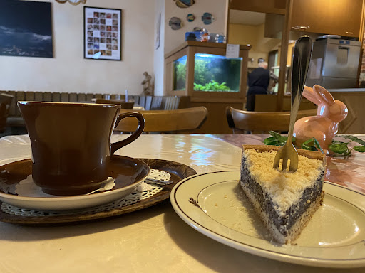 Read moreGleich links neben der zugehörigen kleinen Bäckerei betritt man das Café Enslein unweit des Rosenquarzfelsens mit Kloster und Wallfahrtskirche. Die Auswahl an Kuchen und Torten war nicht sehr groß, aber die Nussecken, die wir uns ausgesucht hatten waren super. Neben dem großen Innenraum gibt es noch eine kleine Terrasse. Die Preise sind günstig und die Leute sehr freundlich. Es bediente der...