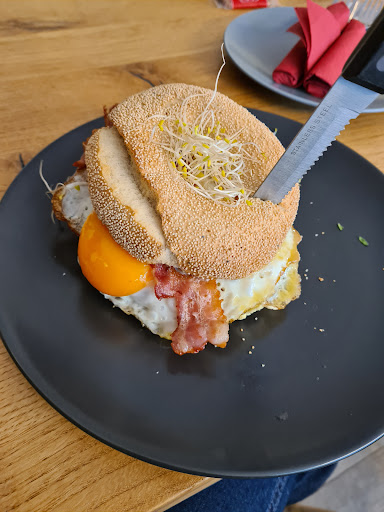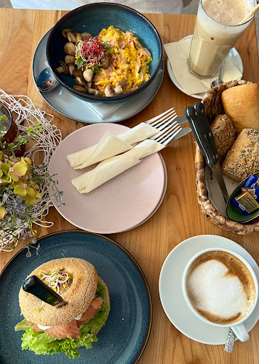Read moreCame here for a weekend brunch with my partner. We shared a scrambled egg with mushrooms and ham and an alaska bagel. Including two coffees the total was 36€ which is not bad considering it was actually quite a lot of food. Happy to see they had iced coffee. The food was quite nice overall. Eggs were still juicy and came with a few nice and crunchy bread rolls. The bagel was warm and crispy and filled well. Honestly all p good. The coffee on the other hand was a lil disappointing as it was a bit bland and not v aromatic. Service was v friendly though! Overall it's still a p nice cafe and I would...