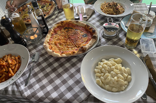 Read moreDiesen Ort empfehle ich gerne in vollstem Umfang. Ich war nur 3 bestellte Pizza und 2 Tiramisu abholen. Sofort tel. erreichbar, extrem freundlich, Gegencheck ob alles einwandfrei verstanden. Ich war dann 10 Minuten zu spät zur Abholung. Das Restaurant liegt am Ortsrand direkt in einem Wohngebiet auf einer Seite offen Blick auf Felder zur anderen Seite. Schönes Wetter, alle Plätze voll besetzt, fröhliche ausgelassene Stimmung, breites Publikum von Familien über Pärchen bis zu einzelnen Gästen. Service schnell, kontaktfreudig und sehr hilfsbereit und zuvorkommend. Die Pizza schmeckte herausragend gut 👍 und zusätzlich auch groß. Dabei bin ich kritisch in der Bewertung da ich oft die Möglichkeit habe mich kulinarisch verwöhnen zu lassen. Das Tiramisu sehr gut. Ich komme sehr gerne wieder vorzugsweise zum...