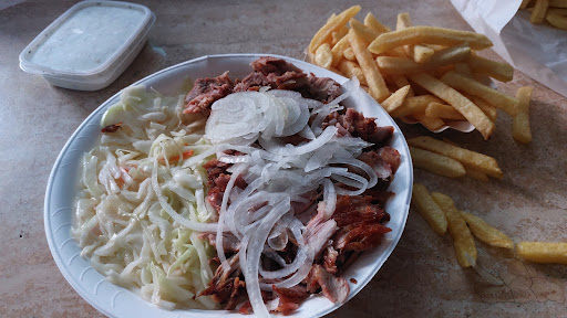 Jetzt zum Essen: Bestellt Gyros Teller Groß. Sauerkraut Fleisch Tzatziki Fries Zwiebel Alles frisch und Gut! *Ohne Tomatenscheibe und Paprika Pulver