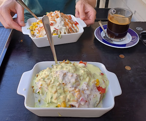 Charming venue offering coffee & grilled potatoes with toppings, plus furniture, pottery & jewelry.