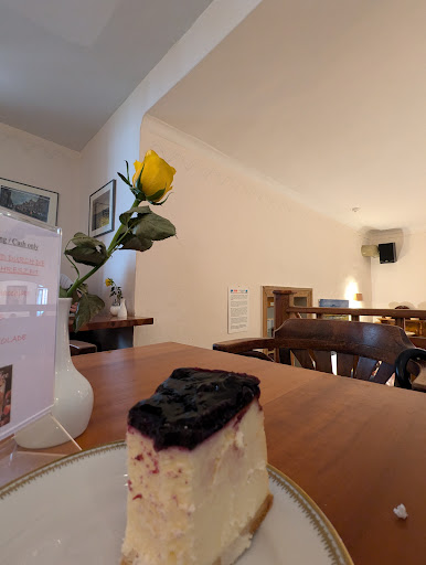We visited last Saturday after a daytrip and had a piece of blueberry cheesecake. #Food# In my opinion as a former chef and cheesecake connoisseur the cake is too sweet and lacks fluffiness - instead its quite heavy so a piece for two is just enough. According to the comments it hits the taste of quite a lot of people. Also there is no visible trace of real bourbon vanille to be found in the cake which could have been a quality indicator. #Service# The young woman who was behind the counter was snotty at best and far away from providing actual service or a sense of hospitality. As soon as I turned my back to her she was joking to a colleague about my ask to take the cake to the table. Apparently, there is a policy that they only take orders at the table so they know where we sit. Ironically though, a different waiter brought our cake and didn't know where we were.. The young man who continued to serve us after the young women took our order was nice. Although a bit too enthusiastic in his approach I sensed a lot of positive energy in him. #Atmosphere# The cafe and interior itself have charm and are indeed quite cozy. The light is dimmed, the walls have framed pictures and the tables are decorated with roses contributing to a pleasant atmosphere. Only the toilets have some improvement potential that should be easy to come by. #My Advice# As professional staff is hard to find I'd suggest to invest in hiring somebody to create dedicated training for a hospitality mindset and service best practices as well as improve on the cake recipes. In a year or so I might visit again and see how your little cafe improved. Best wishes!