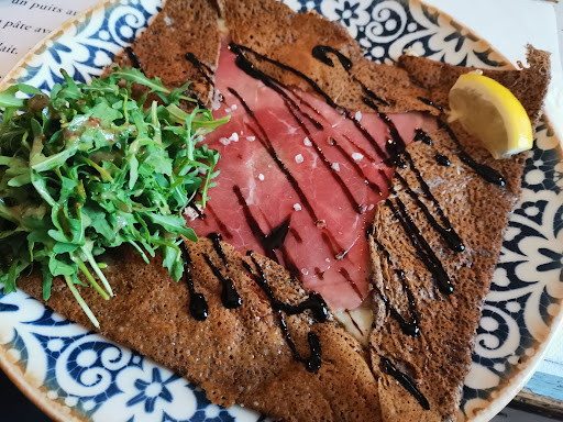 Read moreWalk the door and travel to Brittany! Soups, quiches and crepes (both savory and sweet) are on the menu, and they are all incredibly well balanced and delicious! Me and my wife shared an onion soup in 2 (we wanted to make sure we had enough room for the savory crepes) and it was very tasty, yet quote light. After that, we got a mushroom, fresh cheese and spring onions crepe, and a beef carpaccio one, with arugula, emmental cheese and balsamic vinegar - both fantastic. We had some of the cider, also from the Breton region, which was very good! We closed our lunch with a sugar crepe with vanilla ice cream to share: in its simplicity, it was fantastic. The service was nice, the place is warm and welcoming. They can speak both German and English, no problem! We highly recommend to book in advance - their website has a great booking service for that.