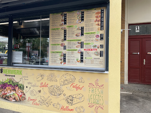 Read moreDas Dönerwerk ist ein Döner-Imbiss direkt am Bahnhof Medienstadt-Babelsberg gelegen. Der Service beläuft sich hauptsächlich auf vor-Ort-Bestellung von Essen zum Mitnehmen, man kann aber auch bestellen und sich das Essen liefern lassen, beziehungsweise abholen. Es gibt an der Seite ein paar Bänke und Tische zum hinsetzen.