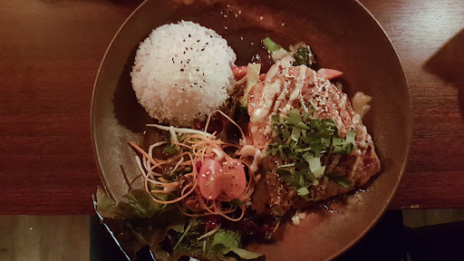Ich selbst hatte den kurz gebratenen Lachs Teriyaki für 17,90€ gewählt. Dieser war außen leicht knusprig mit deftiger Würzung und innen herrlich rosa, wenngleich an einem Ende ein bisschen kühler als mir lieb. Frische Gemüsebeilagen und ein bissfester, leckerer Reis rundeten das Gericht ab.