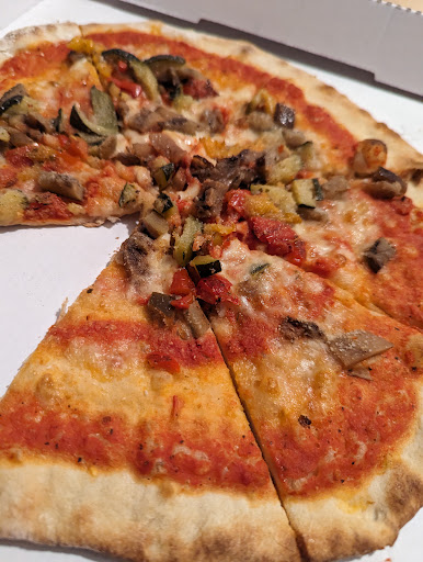 2025 Bewertung: ★★☆☆☆ Ich war wieder da. Es war merkwürdig. Pizza lecker, Preis hoch – 13,50 € bis 22,50 € für einen gehobenen Fladen mit Belag. Der Pizzateig war sehr gut, aber der Rand war extrem breit, und der Belag sehr sehr sparsam.