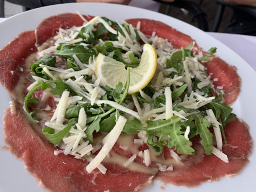Wir hatten Mozzarella Caprese die Bufala con Basilico (15€ pP). Das wurde mit einigen wenigen Kirschtomaten und einem Hauch Balsamico serviert, uns zu wenig Tomaten und auch zu wenig Dressing, geschmacklich aber ok.