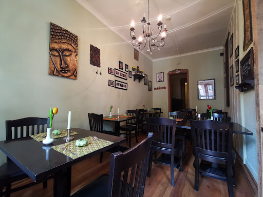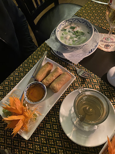 Wir waren 10 Leute, davon 3 Kinder von 3-8 Jahren. Die erste Frage meinerseits, ob es auch evtl. Pommes gibt für die Kids, da die doch recht mäkelig sein können, wurde nett aber doch sehr bestimmt mit "Nein, wir sind ein Thai Restaurant" beantwortet. Sehr konsequent 👍und völlig okay in meinen Augen, wenn gleich ich doch Bedenken hatte, auf welche Diskussionen ich mich nun mit den Kids einstellen konnte. Das war jedoch völlig unbegründet, die beiden Kleineren begnügten sich mit Nudeln (sehr lecker) und der Große probierte sogar Fleisch, was er zuhause nie gegessen hätte und befand es ebenfalls für sehr gut. Auch der Rest der Runde fand passende Gerichte und war ebenfalls restlos zufrieden damit. Nur ich konnte mich nicht entscheiden (eigentlich gar nicht meine Art), aber es gab so viele leckere Sachen und einiges was ich gern probieren wollte. Somit entschied ich mich, mich von der Küche einfach mal überraschen zu lassen. Als ich dies jedoch bei der Bestellung so sagte, schaute mich die Bedienung (wohl die Chefin?) mit großen Augen an und meinte, es wäre wohl normal, sich etwas empfehlen zu lassen aber es war wohl das erste Mal in ihren 25 Jahren in dem Restaurant, dass sie selbst etwas für den Kunden auswählen söllte. Tja, schon das 2. Fettnäpfchen für mich an diesem Abend aber dennoch mit Happy End. Den Kindern hat alles sehr lecker geschmeckt, auch wenn es keine Pommes waren und mein Überraschungsgericht (krosse Ente mit Gemüse und Reis) war wirklich das Leckerste, was ich seit Langem gegessen habe, auch wenn mir danach etwas der Mund gebrannt hat. Aber das war es mir Wert 😎 Am Ende hat es für einen ebenfalls sehr leckeren Nachtisch auch noch...