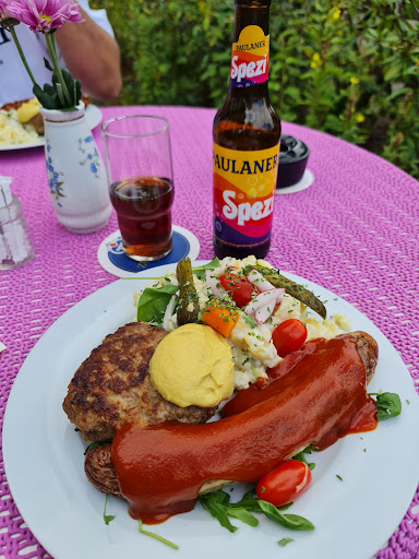 Read moreEin gemütliches kleines Gartenlokal mit sehr leckerer deutscher Hausmannskost. Freunde herzhafter, deutscher Küche kommen hier voll auf Ihre Kosten. Für kühlere Tage ist es auch innen rustikal und gemütlich eingerichtet. Die Nähe zur parallel laufenden Straßenbahn wird durch eine hohe eingrenzende Hecke unter großen Schirmen wettgemacht. Wir hatten für einen familiären Anlass nur Kaffee und Kuchen gebucht, doch nach spontanem Entschluss auch das Abendessen dort einzunehmen hat man uns trotzt hoher Gästezahl und ausgebuchter Reservierungen einen netten und kulinarisch köstlichen Abend ermöglicht. Da nahm man auch gern längere Wartezeiten in Kauf, zumal der Service von einem nur 2-Mann-Team hervorragend gemanagt wurde und die Bedienung stets nett und witzig blieb. Danke für den gelungenen Abend. Wir kommen...