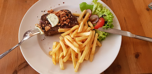 Read moreWir sind hier nach vorheriger telefonischer Reservierung zu siebt eingekehrt. Leider war die Terrasse wegen Fassadenarbeiten geschlossen, weshalb wir drinnen saßen. Das Restaurant ist geschmackvoll eingerichtet mit viel Massivholzmöbeln. Schnell ist uns aber ein großes Manko an dem verhältnismäßig kleinen Raum mit niedrigen Decken aufgefallen: Sobald sich mehr als 2 Familien nebeneinander befanden, wurde es derart laut, dass man sein Gegenüber ohne zu schreien gar nicht mehr verstehen konnte. Wir haben darauf hin gefragt, ob es möglich wäre, dass wir uns in eine andere Ecke des Gastraumes setzen, da dort noch alle Tische frei waren. Die Kellnerin meinte, dass dies leider nicht möglich sei, da es sich beim runden Tisch um einen Spezialtisch handle, den man nur auf Vorbestellung besetzen könne. Ok, soweit so gut. Als wir dann ca. 10 min später wegen des anderen großen Tisches gefragt haben, teilte uns der Besitzer (?) mit, dass dies der Stammtisch sei und wir somit dort auch nicht sitzen können. Etwas frustriert haben wir das zugegebenermaßen sehr leckere Essen in uns reingeschaufelt, gezahlt und haben das Restaurant auf der Suche nach einer schöneren Einkehrmöglichkeit, in der man sich auf wirklich unterhalten kann, verlassen. Wir haben den Besitzer (?) beim Bezahlen auf den Lärmpegel aufmerksam gemacht, dieser meinte aber, dass "das ja in jedem Restaurant" so sei. Einfache Schaumstoff-Isolationspolster an der Decke, wie man sie in jedem gut sortierten Musikgeschäft beispielsweise bekommen kann, würden schon helfen, aber anscheinend gibt es hier aus Sicht des Betreibers keinen Handlungsbedarf. Übrigens waren beide Tische, welche wir zum Platzwechsel angefragt hatten, bis zum Ende unseres Aufenthaltes (ca. 80 min) komplett...