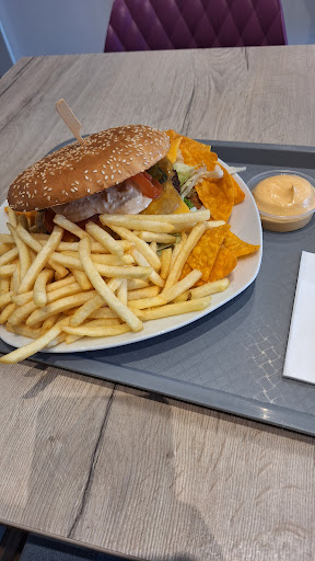Read moreFür die Qualität der Speisen viel zu teuer ! Es wurde ein Veggieburger 6,95€ und große Pommes Spezial 6,45€ bestellt. Die Pommes Spezial mit einem Streifen Ketchup, Mayo und rohe, rote Zwiebeln gehackt oben drauf waren sehr dünn und konnten mit dem beigefügten Holzgäbelchen nur mühsam vertilgt werden. Der Veggieburger sah schon nicht unappetitlich aus als ich diesen auf dem Tablet beäugt habe, die Buns im Verhältnis zum Pattie viel zu groß oder halt das Pattie zu klein, es konnten so nur die Eisbergsalatstreifen als Belag erkannt werden, das Auge ist mit ! Der Geschmack war einfach nur ekelhaft die Saucen kann ich nicht bestimmen aber auf jedenfall die falschen der Pattie war nicht angebraten, wirkte als wäre dieser in der Mikrowelle aufgetaut. Ich empfehle hier den Film...