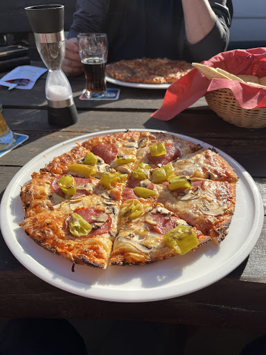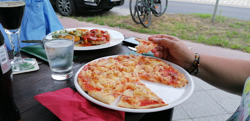 Vorweg genommen, die Pizzen waren günstig und schmackhaft, weshalb ich auch 2 Sterne vergebe, der Rest war nicht so dolle. Ich war mit meinem Sohn alleine und wir hatten Hunger auf Italieniesches, da wir hier schon mal vorbeigefahren sind, hielten wir dann auch hier an und wollten hier unseren Hunger und Durst stillen. Als Erstes mußten wir erstmal die WCs aufsuchen, nachdem wir eine Steile Treppe runtergehen mussten, haben wir uns unten im dunkeln vorantasten müssen, bis irgendwann ein Bewegungsmelder reagierte und uns Licht schenkte. Draussen war es noch schön warm, also beschlossen wir, uns nach draußen zu setzen. Neben uns saß ein Pärchen mit 3 Hunden von dem eins quer auf der Bank lag. Naja, wir sind ja nicht so empfindlich, als diese gingen, haben wir uns an diesen Platz gesetzt, um noch die Hauswand im Rücken zu haben, da ohne Sonne es noch ein wenig kühler war als erwartet. Wir bestellten erst unsere Getränke und erhielten dabei auch gleich die Speisekarten, welche schon bessere Zeiten gesehen haben, einige Seiten waren schon verblichen. Einen Augenblick später bekamen wir auch schon unsere gut gekühlten Getränke und bestellten unsere Pizzen, 1 x Salami und 1 x Scampi. Während wir so auf unser Essen warteten, bemerkten wir die schon mehrfach bekleckerten Auflagen, auf die wir Platz genommen haben, also die sollten mal anständig gereinigt werden, das geht mal gar nicht. Die Pizzen wurde nach einer angenehmen Wartezeit serviert. Die Salami war mir persönlich etwas zu fettig, aber geschmacklich war sie okay. Aber die Scampi Pizza fand ich optisch daneben, nicht dass sie auf einer Seite schon etwas sehr Schwarz von oben und auch am Boden war, die laut Speisekarte angepriesenen Großgarnelen, erwiesen sich als höchstens 1 Großgarnele, die in kleine Stücke auf die Pizza verteilt wurden und etlich Kleinstgarnelen die eine Größe einer normalen Nordseekrabbe, wie man sie aus Büsüm kennt. Von der Bedienung kein Wörtchen, also scheint es hier normal zu sein. Da die Pizza "nur" 8,00 Euro gekostet hat, wollte ich hier kein Aufstand machen. Geschmackich war sie okay. Die Bedienung war freundlich und erkundigte sich auch mehrfach, ob alles okay wäre. Es war okay, mehr aber auch nicht und deshalb keine...