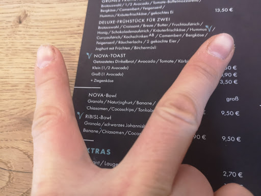 Read moreAufgrund der Namensgebung des CafĂ©s wollte meine Tochter dort unbedingt mit mir zum FrĂŒhstĂŒcken. Wir bestellten uns in dem wirklich sĂŒĂen, besonders gestalteten CafĂ© mit den tollen samtigen Holztischen, eine Nova Bowl, ein Bircher MĂŒsli und den Nova Toast đ In das Bircher MĂŒsli hĂ€tte ich mich definitiv hineinlegen können, es war der Hammer und absolut traumhaft angerichtet in einer wunderschönen SchĂŒssel und einem Holzbrettchen darunter. Ebenso der Toast war ein Traum, sowas leckeres hatten wir selten gegessen. Ich mag zwar KĂŒrbiskerne ganz gerne, jedoch waren bei dem Toast doch ein wenig arg viele dabei. Das war auch der einzige kleine Minuspunkt. Und vielleicht dass die Tischverteilung ein wenig anders war. Das CafĂ© kann man auch fĂŒr Feiern mieten, deshalb stehen die langen Tische zusammen und fĂŒr 2 Personen gibt es eben nur 4 bis 5 PlĂ€tze, wenn ich mich recht erinnere. Trotzdem ist es ein schönes PlĂ€tzchen mit richtig leckeren...