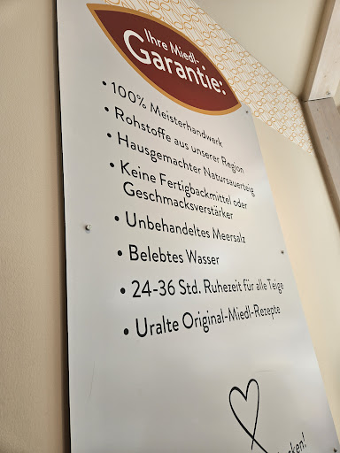 Wenn ich meine Mutter nach Prien zu Arztbesuchen begleite, möchte Sie immer gerne bei Miedl Kuchen essen. Dies mache ich auch gerne, da auch ich die Kuchen und Torten dort äusserst schmackhaft finde. Was ich jedoch immer wieder erfahren durfte, war der hektische, abfertigende und nicht sehr Kundenfreundliche Service der Verkaufsdamen. Letzten Freitag waren wir bereits schon am Vormittag in der Bäckerei und da erfuhr ich endlich mal ein wunderbar freundliches, herzliches, beratendes und stressfreies Bedienungserlebnis mit einer (wohl neuen, sehr empathischen) Verkäuferin. Herzlichen Dank dafür. Daran sollten sich manch andere Damen mal ein Beispiel nehmen. Was ich persönlich als sehr unangemessen und störend für ein Cafe bzw. einen Backwarenverkauf empfinde, ist diese Partymusikbeschallung. Welche durch ihre Lautstärke auch die Kommunikation über den Tresen erschwert. Braucht es sowas in diesem Bereich??? Ich finde, Nein. Ansonsten bin ich mit der Oualitat der Miedlwaren sehr zufrieden. Die Preise sind nach wie vor im hohen Bereich gehalten. Und ich meine, sogar wieder gestiegen. Was ich nicht für gut heissen kann.