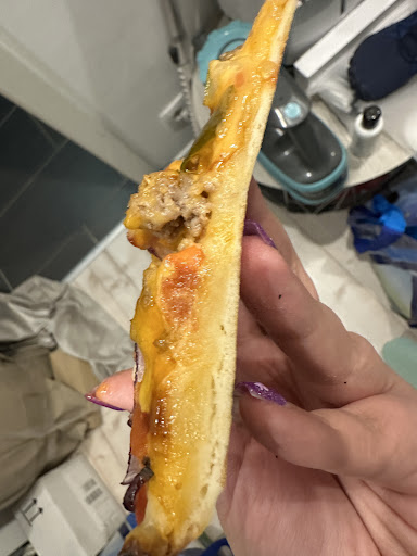 Habe mal von der Hoshi Bilder gemacht, man kann sehen das der Teig unten angefangen hat aus zu backen aber darüber war der Teig so roh das er schmierig war und der Belag teilweise einfach runtergerutscht ist bzw der Finger beim anheben durch...