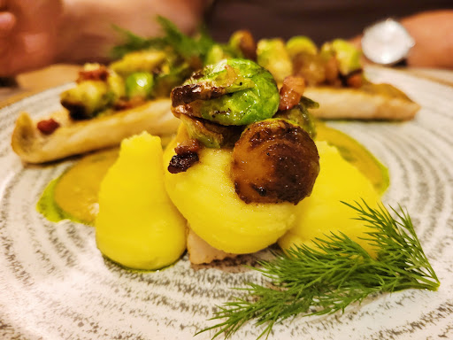 Read moreWir waren schon sehr neugierig auf das Restaurant, nachdem wir die wirklich überbordenden Rezensionen gelesen hatten. Die Latte hing hoch und wir haben, wie so oft, mit allem gerechnet. Was soll ich schreiben? Gewonnen in allen Kategorien. Das Ambiente eine schicke Gemütlichkeit. Der Service nicht nur kompetent sondern auch überaus sympathisch und vor allem authentisch. Und das Essen - ja, das war wirklich überraschend. Ich liebe es, wenn mich Geschmack auf neue Wege führt. Wenn mir Kombinationen von Zutaten nicht gleich typisch erscheinen, unötiges Kraut auf überdekorierten Tellern den Blick auf das Wesentliche versperren. Hier war alles perfekt, und ich meine WIRKLICH perfekt. Ein Esserlebnis. Und die Grüße aus der Küche liegen mir immer noch auf der Zunge. Danke, für diesen Abend und von mir hättet ihr den ersten Michelin Stern.