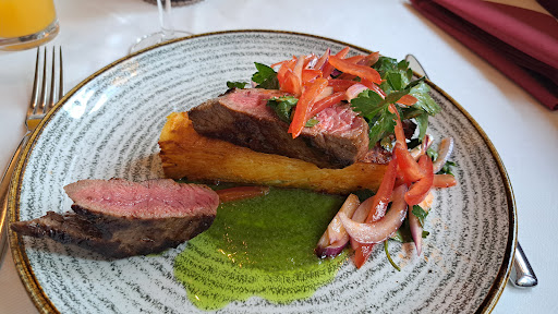 Das Essen war sehr gut und qualitativ hochwertig. Es wurden hier kleine Kunstwerke auf die Teller gezaubert. Mengenmäßig, im Vergleich zu anderen Restaurants hätte es bei den Preisen gerne etwas mehr sein können. Auch hätte ich mir gewünscht, dass man mich gefragt hätte, wie ich mein Steak gerne hätte. Ansonsten waren wir sehr zufrieden mit der sehr freundlichen Bedienung. Trotz, dass wir sogar das Essen für 11 Personen im Einzelnen vorbestellt hatten, haben wir fast eine Stunde auf das Essen gewartet. Absolut enttäuscht hat mich das sogenannte Himbeer-Tiramisu. Dies wurde, im Gegensatz zu allem anderen Essen, unspektakulär in einer Schale serviert und wirkte eher improvisiert. Was beim Tiramisu das Löffelbisquit ist, war hier ein kleines Stück vom selben Blondie, wie bei dem anderen wählbaren Dessert. Was eigentlich eine Mascarpone Créme wäre, hat geschmeckt als würde man sich Löffel für Löffel blanke Sahne in den Mund schieben. Es gibt hier auch keine Kinderkarte. Aber vermutlich sind Familien nicht das Zielklientel. Was erst einmal nicht schlimm ist. Mein Fazit: nett, zu zweit schick essen zu gehen, absolut ungeeignet...