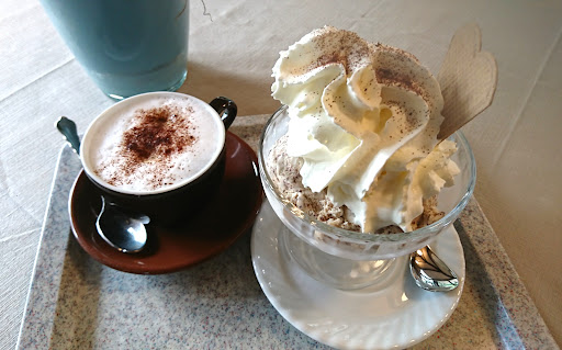 Read moreWir haben das Café während unserer Reha häufig besucht. Die Tortenauswahl ist umfangreich und auch die Kaffeespezialitäten sind sehr gut. Sonntags gibt's leckere Waffeln mit heißen Kirschen und Eis. Das Café ist recht groß und man findet immer einen Platz. Auch draußen auf der Terrasse kann man gut in der Sonne sitzen. Der Service ist flott & freundlich. Alles in allem ein schönes Plätzchen zum Entspannen und um es sich gut...