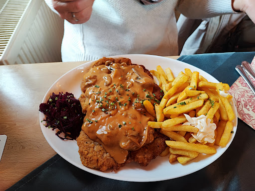 Read moreZum Weiherstübchen gehört eine wunderschöne Weiherterrasse. Ein Platz zum Verweilen. Aber nicht zum Essen. Wir waren dort mit einer größeren Gruppe von Wanderern. Wir saßen im Stübchen bei guter Laune und sehr attraktiver Bedienung. Es wurde gelacht, getrunken und erzählt. Dann kam das Essen. Das war vorher durch die Organisatorin vorbestellt. Es gab Schnitzel mit Pommes und Salat. Ein kulinarischer Donnerschlag! Alles sehr gesund, da ungesalzen. Das Fleisch war dick paniert, die Pommes nicht der Rede wert, die dazugehörige Pilzsoße dünn. Der Salat war erstlienig aus Kraut. Und das alles für 19,50€. Das ist schlichtweg unverschämt.Teures Einheitsessen. Aber wie gesagt, freundliches attraktives Personal. Aber das ist zu wenig für ein Stübchen im provinzigen Urbach. Der Inhaber sollte seine bestimmt rare Zeit mal beim Besuch der Mitbewerber nutzen, um Anregungen zu bekommen. Ich hoffe, dass ich nun kein Hausverbot bekomme. Ich würde gerne mal die Burger versuchen. Und die deutsche Tugend des deutschen Gastes, auch negatives Essen zu loben, gipfelt in der Absicht, einfach nicht...