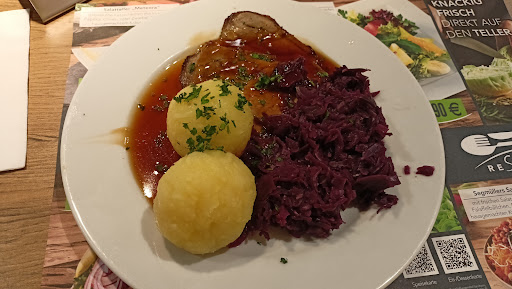Ursprüngliche Bewertung: Meiner Meinung nach ist das Restaurant im Segmüller Möbelhaus in Pulheim das beste Möbelhaus-Restaurant, wenn auch leider mit deutlich absteigender Tendenz im kontinuierlichen Verlauf. Immer häufiger werden ganze Bereiche im Restaurant gesperrt, obwohl sehr viele Gäste einen Platz suchen. So wurden wir schon mehrmals von anderen Gästen angesprochen und gefragt, ob wir bald bezahlen würden. Sodann standen eben jene Wartenden neben unserem Tisch - unangenehm für uns und durch ausreichend freigegebene Tische wäre das zu vermeiden. Beim Schweinebraten fiel mir auf, dass die Portionen deutlich kleiner geworden sind. Gab es früher noch dicke Fleischscheiben und viel Soße, so ähneln die Scheiben jetzt eher zwei dicken Scheiben Wurst und die Soße reichte nicht aus, um die Knödel nicht teilweise trocken essen zu müssen. Semmelknödel gibt es leider noch immer nicht und das in einem bayerischen Restaurant! Ansonsten gilt: Authentische bayerische Küche, köstliche Torten (Tipp: Sacher und Himbeer), schmackhafte Eisbecher, freundliche, aber anscheinend überforderte Bedienung in Tracht. Oft ist es schwierig, einen freien Tisch zu finden. Die Torten gibt es übrigens auch zum Mitnehmen. Ganz schlecht finde ich, dass man die Eissorten nicht wählen kann. Sie sind vorgegeben, je nach Eisbecher. Ich wollte zwei Kugeln Pistazieneis, aber das war nicht möglich! Sehr unflexibel, wie ich finde. Der Kellner hat in der Bestellmaske keine Möglichkeit der Eingabe. Das sollte unbedingt...