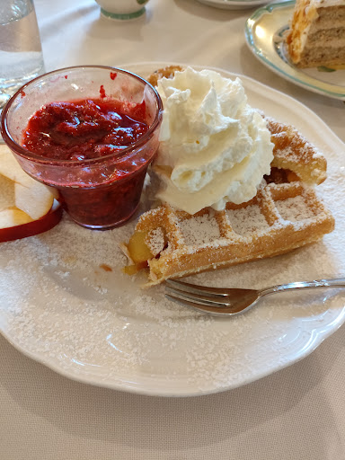 Es öffnet eigentlich von Dienstag bis Sonntag von 14 bis 18 Uhr für Kaffee, Kuchen und Waffeln. Am Wochenende kann man aber bis 11 Uhr hier auch als Externer für 19 € das Frühstücksbuffet genießen.