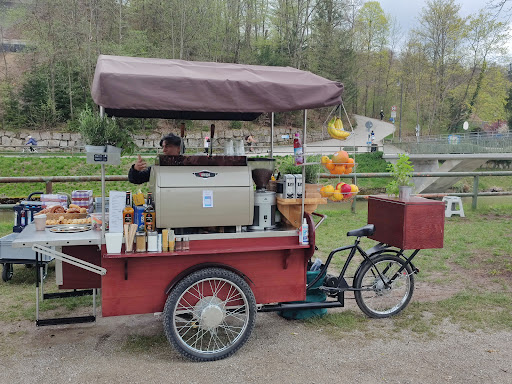 Bei schönem Wetter stehen Manu & Hadi mit ihrem Coffee-Bike unter der Großhesseloher Brücke bei Pullach. Im Angebot gibt es Heiß-und Kaltgetränke sowie süßes und herzhaftes Gebäck. Die Getränke und Snacks sind sehr lecker. Die Kaffee-Spezialitäten werden mit einer professionellen Siebträger-Maschine zubereitet.