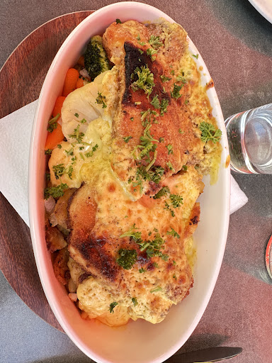 Ich hatte Gemüseteller mit Reis. Reis war gut. Pilzrahm (den ich da nicht erwartet habe) war ok, ziemlich salzig aber ok. Aus den Latschen hat mich der Brokkoli und der Blumenkohl geschmissen. Das es TK-Ware war - ok, sei‘s drum. Aber das das Gemüse so zerkocht war, so sehr, dass man mit dem Löffel zerdrücken konnte. Keine Spur von Frische oder sonstwas. Das hat mich enttäuscht, weil es wirklich ganz einfache Sachen sind.