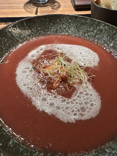Read moreSchönes Ambiente, aber ich war trotzdem sehr enttäuscht, es war kalt innen, auch die anderen 3 Tische ließen ihre Winterjacken an & unser Essen dauerte sehr lang, wir warteten fast 50min darauf & mein Gemüse war kalt, ebenso meine rote Beete Suppe vorweg, am Rand warm, in Der Mitte kalt…& mein Rumpsteak war sehr zäh & hatte mehr nciht kaubares Fett als Fleisch…das hab ich deutlich besser gegessen schon…die Spare Ribs meines Mannes fielen zwar vom Knochen ab ja, aber das Fleisch war sehr trocken…mein getränkt Violet Spritz war sehr lecker…das Restaurant war leer, nur ein Tisch besetzt mit Spaniern, über die sich die Kellnerin dann noch aufregte bei uns, dass alle zwei Wochen ein Bus Spaniern anrollt, auch Augenrollen, als noch weitere kamen, wenn man weiß, dass die kommen, dann macht doch einfach mal eine spanische oder englische Übersetzung der Karte…dann muss das Personal auch nicht so granting zu denen sein, eine jüngere Bedienung mit Wahnsinns langen Fingernägeln wurde auch angesprochen und die dann nur so schnippisch: da isse doch, zeigend auf die andere Bedienung & bediente die Spanier dann nicht…Personal lief einiges umher, hinter der Theke teilweise 8-10 Leute, dennoch saßen wir sehr lange vor unseren Tellern, die abgeräumt werden konnten, das Personal, was in Engelbert Sachen eher aussieht wie Handwerker & nicht zum Ambiente passt, quatschte hinter der Theke & machten Handyfotos, die egtl toll ist & wir dachten wir können bei der Zubereitung zu sehen, da dort auch ein Kochbereich ist, aber da stand nur alles rum im Kochbereich hinter der Theke, Rewetüten und anderer Krams…alles in allem, ich habe anhand der Aufmachung des Ladens viel mehr erwartet, der Style ist gut, auch die Herrichtung der Teller, jedoch fehlen noch die kleinen Kniffe in Bedienung & Timing, keine kalten Speisen servieren etc., da muss noch mehr auf Zack sein…wir würden nicht nochmal kommen…nicht für den Preis…der Glühwein war...
