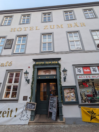Doch am dritten Advent sind wir tatsächlich im Hotel Zum Bär gelandet, um dort nach unserer Anreise unser Mittagessen einzunehmen. Ohne weitere Umwege verkünden wir hiermit: Wir wurden nicht enttäuscht. Ein Sesamschnitzel mit frischen Rahmchampignons und Kroketten, und für mich bitte die Schweinemedaillons ebenfalls mit frischen Rahmchampignons und Bratkartoffeln. Wir würden jetzt nicht unbedingt einen Michelin-Stern vergeben, aber unser Essen war solide gekocht und hat uns beiden sehr gut geschmeckt. Die Bedienung war freundlich, die Getränke wohl temperiert. Es gibt nichts zu meckern. Ob wir wiederkommen würden? Nun ja, es spricht nichts dagegen, aber ein klein wenig Luft nach oben gibt es noch. Also schließen wir einen zukünftigen Besuch nicht aus. Es war lecker aber nicht überragend.