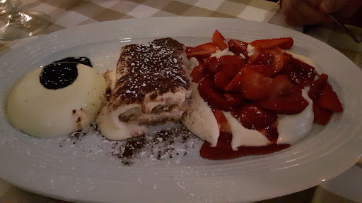 Das Essen war ein Gedicht. Ich hatte die Orecchiette mit Rinderfiletstückchen. Das Fleisch war unglaublich zart und sehr lecker. Meine Begleitung hatte eine Pizza Margherita. Diese war etwas schwer zu schneiden, aber sehr sehr lecker. Hierbei auch keine Klagen. Zum Nachtisch gab es eine gemischte Dessertplatte mit Mousse au Chocolat, Tiramisu und Mascarponecreme. Extrem delikat. Die Portionengröße war sehr gut. Alle sind satt geworden und fühlten sich nicht "völlig überfressen".
