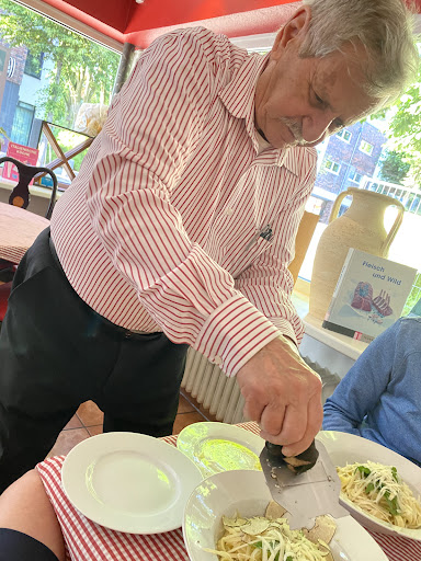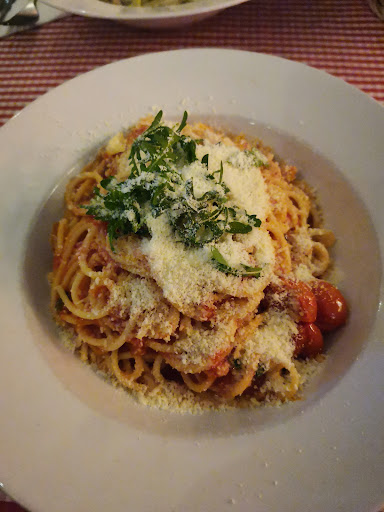 Read moreDieses Restaurant oder eine absolute Überraschung. In einem unscheinbaren kleinen Haus findet man das Restaurant. Das muss man aber fast wollen. Im Inneren erwartet einen eine durchaus ältere, aber gepflegt sein Richtung aus den 80er Jahren. Der ältere Herr, der uns bedient hat, hat uns sehr freundlich an der Tür empfangen einen Platz zugewiesen und uns von Anfang bis Ende freundlich und zuvorkommend bedient. In diesem Restaurant fühlt man sich sofort wie wie im Urlaub. Der Antipasti Teller war mit jedem Stück ein tolles Kunstwerk. Während die Teller Sprache hier auch in den 80ern stehen geblieben ist war jedes Gericht auf den top zubereitet. Die Spaghetti arrabiata Carmen bei den ersten zwei Gabeln sehr harmlos daher und bauten ihre Schärfe über den Genuss des Essens auf. Ich habe selten so gute Spaghetti arrabiata gegessen. Auch die Tagliatelle mit Rindfleischstreifen waren sehr lecker. Das Fleisch war immer noch saftig und der Geschmack großartig. Als Highlight kann man hier Nudeln, Olivenöl, Meersalz und viele weitere italienische Lebensmittel einfach für zu Hause kaufen. Wir bedanken uns für einen wunderschönen...