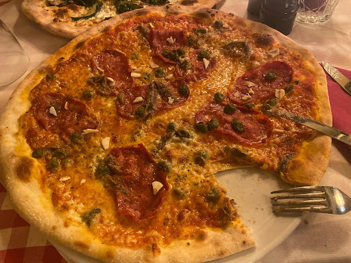 Read moreSchade, ein auf und ab der Gefühle. Bei Ankunft war die ganze Terrasse voller Raucher. Kann man keine Raucherecke gestalten die sich nicht direkt am Haupteingang befindet? Das Restaurant ist sehr traditionell, mit Holz, eingerichtet. Toll, dass wir trotz spontanem Besuch noch einen Tisch bekommen haben. Der Tisch war nur für eine Person gedeckt und die Tischdecke schmutzig. Die erste Bedienung war offensichtlich bisschen überfordert und schwer zu verstehen. Die Tageskarte wurde uns garnicht präsentiert. Zwischen durch immer wieder ein anderes Gesicht, dass Essen oder Getränke bringt. Es schien als gebe es keine richtige Tisch-Aufteilung unter den Kellnern. Wir wurden oft, das gleiche zweimal gefragt. Mein Sonderwunsch "Pizza ohne Schinken" kam in der Küche wohl als "Pizza ohne Pilze" an. Wurde aber auch schnell wieder in der Küche geändert. (Schinken runter, Pilze rauf). Der Teig war schön dünn und der Rand kross, nur die Mitte viel zu durchgeweicht. Und warum jeder Belag separat auf der Pizza lag? Wohl die eigene Interpretation des Küchenchefs?! Als wir die Rechnung forderten kam die obligatorische Frage: "ob alles in Ordnung war, und man wünsche Kritik weil man daran wachse" Unsere Meinung wollte aber keiner hören, denn die einzige Frage auf unsere Antwort war: "ob wir Italiener/in wären?" Die Rechnung folgte ohne Kommentar und wir wurden nicht mehr beachtet. Hier sollte definitiv an der Kritikfähigkeit...
