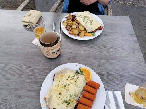 Sehr schade und leider dumm gelaufen für uns ! Wir hatten gestern kurzfristig angerufen und um einen netten und ruhigen Tisch für 2 gebeten. Ja kein Problem und 19 Uhr passt, war die nette Auskunft am Telefon. Kurz vor 19 Uhr angekommen und der komplette Parkplatz voll - Bus von Mainz 05 und echt viel los - bis dahin noch gedacht ok wir haben ja reserviert und sitzen bestimmt dann drin im Restaurant. Leider falsch gedacht - wir haben der Bedienung gesagt das wir reserviert haben und sie sagte „ohne Hallo zurück zu sagen „ es wären genug frei hier auf der Terrasse und wir sollen uns irgendwo hinsetzen. Oh ok das mit dem ruhigen gemütlichen Abend davon haben wir uns direkt verabschiedet aber wir wollten es mit Humor nehmen und dem allen eine Chance geben. Nach ca. 10 Minuten wurde uns eine Karte gebracht - keine Frage nach einem Getränk - nichts - und weg war sie direkt. Enttäuschend für uns - da gab es gar nicht die Gerichte die wir auf der Internetseite gesehen haben - die wir gerne gegessen hätten - aber auch da waren wir noch flexibel und hätten auf dieser sehr abgespeckten Karte noch etwas gefunden - wenn auch keine Vorspeise aber dann wäre es halt nur ein Hauptgericht für jeden geworden. Tja und da saßen wir - und saßen - und saßen dann ne sorry aber es war echt sehr warm und ein Getränk wäre super gewesen. Nach 27 Minuten ohne überhaupt die Bedienung noch mal an unserem Tisch gesehen zu haben - ohne überhaupt bestellt zu haben - da war klar das ist jetzt schon ein Desaster und besser wäre es mit Sicherheit auch nicht mehr geworden und mal ehrlich 27 Minuten bei ner 30 Grad ohne die Hoffnung auf ein schnelles Ende des Durstes - das war dann auch uns Zuviel. So sind wir aufgestanden und woanders Essen gewesen. Mehr als schade und klar auch sehr ärgerlich! Man hätte uns am Telefon schon mitteilen können und müssen - das wird ein nicht ruhiger Abend ! Man müsste auch potenzielle Gäste vorab informieren das nicht die gesamte Speisekarte zur Verfügung steht. Ob wir das noch mal wiederholen - ich...