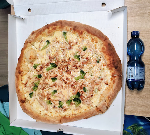 Hab über Lieferando eine 50er "Pizza Weiß Chicken" und ne 26er schlichte Margherita. Also ich wusste, da bekommt man gute Pizza, aber das heute hab ich so nicht in Erinnerung. Die Erwartung wurde bei weitem übertroffen. Die Pizzen kamen schnell und sehr heiß. Als ich den Rand in die Hand nahm, wie ein frisches Stück Brot. Knusprig, fluffig, frisch. Lässt man nicht übrig 😁 Frisch angebratenes Fleisch, saftiger Brokkoli und echt gut belegt. Geschmacklich echt allererste Sahne. 1 Stück reicht locker um satt zu werden, jedes weitere ist einfach nur Genuss. Mit 50 Durchmesser die bessere Familienpizza, so bekommt jeder ein gleiches Stück und nicht nur Mitte oder nur Rand. 25€, die ich dafür sehr gerne gezahlt habe. Die Margherita, die sah nach allem aus, nur nicht wie eine typische Margherita. Wie eine 4-Käse. Allein von der Optik und dem Teig würde ich diese Margherita schon jeder anderen "Belag"-Pizza von anderen Läden vorziehen.