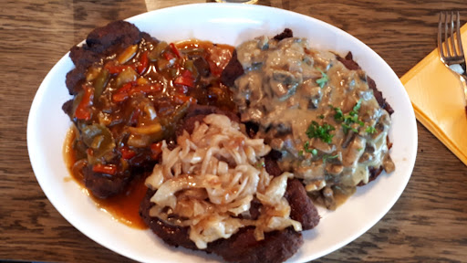 Read moreWir waren im November auf Empfehlung mehrerer von einander unabhängigen Bekannten zum ersten Mal hier. Die Schnitzelplatte mit schmackhaften Soßen war riesig und sehr lecker, genauso wie die Gänsekeule mit Klößen und Rotkraut. Die Pannade der Schnitzel Wiener Art von den Kindern dagegen war fast schwarz und ungenießbar. Nach deren Entfernung war das Fleisch ziemlich zäh und nur mit großem Widerwillen essbar. Schade, dass scheint nicht die Regel zu sein - wir hatten einfach Pech und kommen trotzdem wieder, um es...