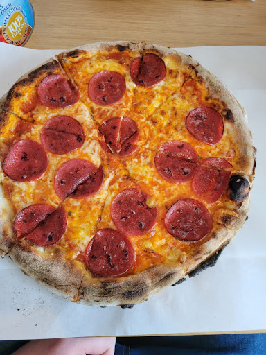 Zum Teig: Das war kein Pizzateig, sondern ein Teig nach Börek Rezept. Es fehlte die HEFE(!). Der Teig hatte null Luftbläschen an den Rändern. Er war dicht, NICHT knusprig und er hatte eine GUMMIARTIGE Konsistenz. Dazu war die Pizza schlecht vorgeschnitten und man konnte die Pizza im Nachhinein schlecht schneiden, weil sie zur Mitte hin sehr dünn und labbrig war. Kinder waren enttäuscht und nicht einmal der Hunger - nach dem langen Spaziergang - hat es reingetrieben. Meine Mutter hat nur ein Stück gegessen. Die Kinder haben ihren knurrenden Bauch gestillt und den erst sehen lassen. 29€ sind mehr oder weniger im Müll gelandet.
