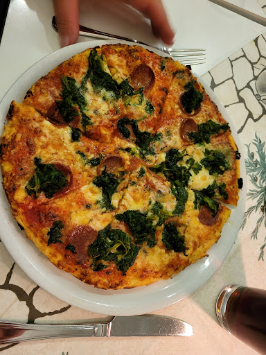Hatte eine Tomatensuppe. Sehr lecker. Konnte auch das Knoblauchbrot probieren und das ist echt Wahnsinn. Kombiniert mit der Suppe ein Gedicht. Die Pizzen sind echt riesig. Ordentlich belegt und geschmacklich perfekt. Kamen heiß an den Tisch. Nichts matschig. Alles so wie es sein sollte. Alle waren begeistert. Ich hab die Spaghetti Pizza probiert und diese werde ich bestimmt erneut bestellen. Muss man einfach gekostet haben. Klingt erst komisch, ist aber mega lecker. Cabonara Variante schmeckt davon auch toll. Nudeln haben auch gut ausgesehen.